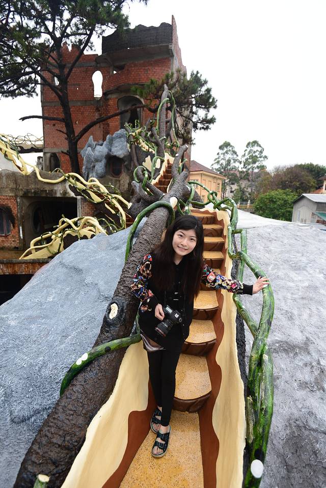 拦了车回到旅馆,等了很久雨都没有要停的样子,只好等雨小一点出门游玩了。打车到了crazy house,好像是一个华人给女儿造的房子(好几栋呢),我也想要这样的麻麻0 0 。建筑风格太童话,拍人像不二选择!