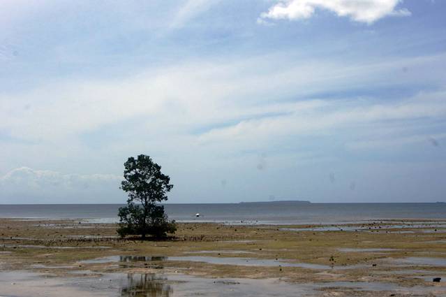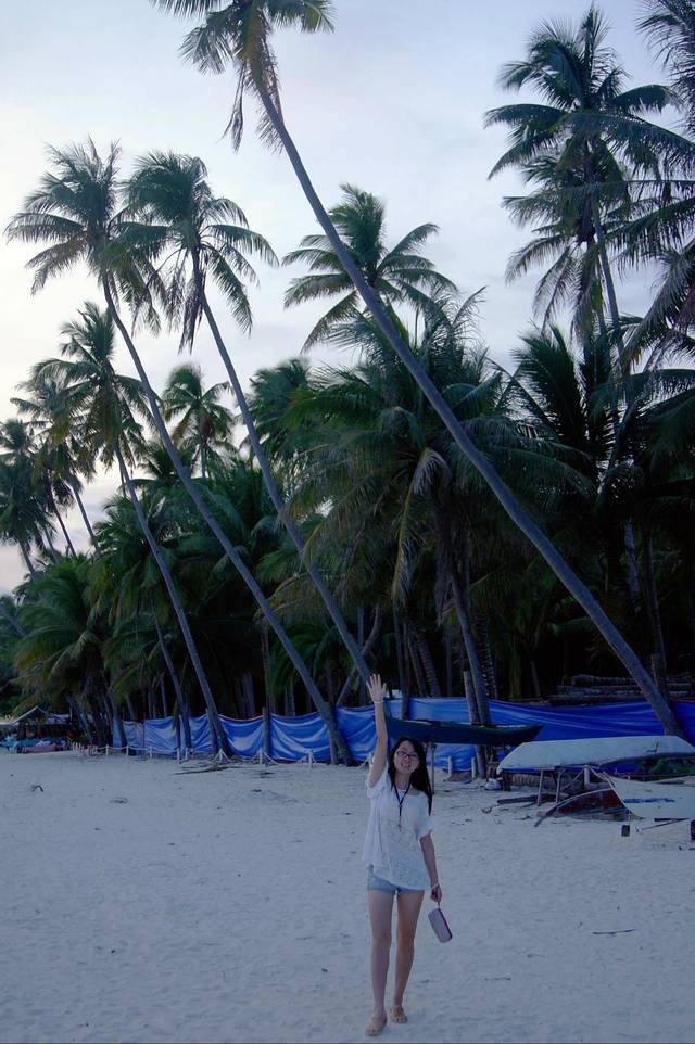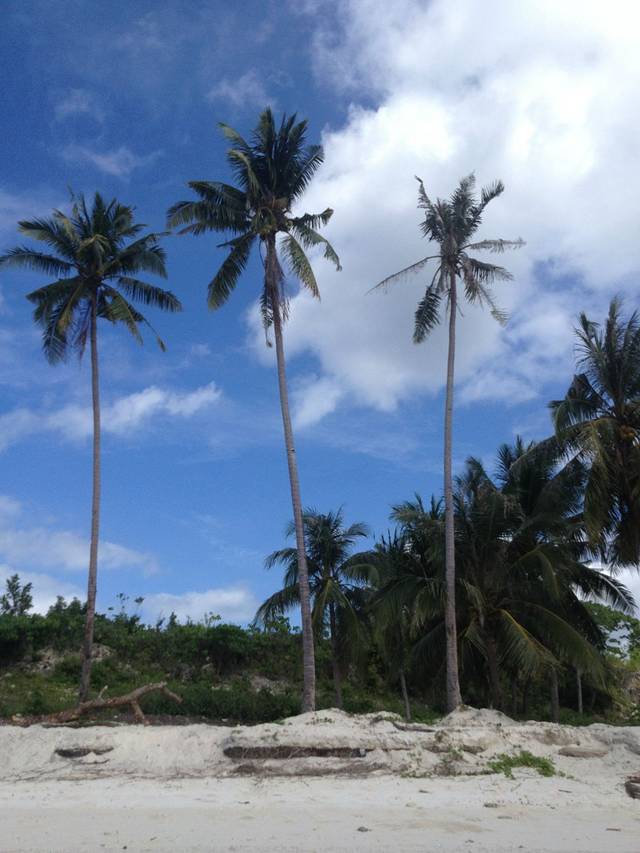 在海上不辨方向,沿着海岸线的一个方向划,看见美景就靠岸,抱着这样的原则,经过半个小时的漫无目的,我们靠岸了。在那个耸立着三棵椰子树的地方……