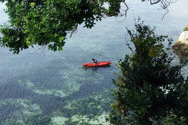 参观完酒店,就下悬崖,租了皮划艇打算“自由行”划到哪儿算哪儿。