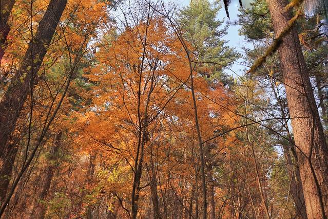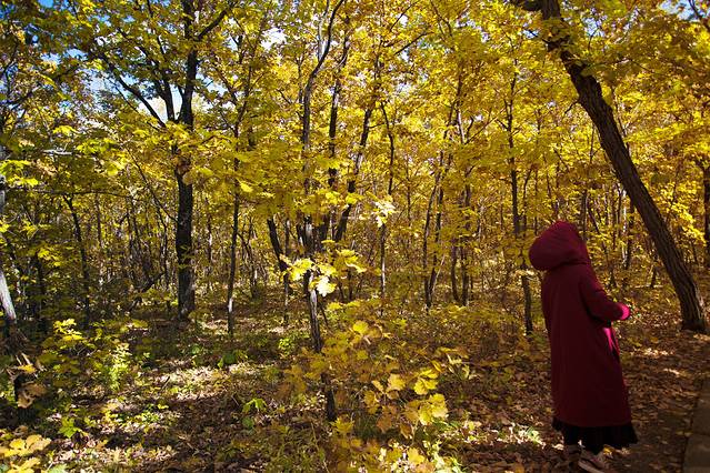 8点出发,昨天下过雨今天天气特别好。一路欣赏五花山一边狂拍,1个多小时到达茅兰沟国家森林公园。