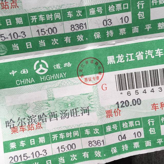 哈尔滨到伊春可以选择火车或者大巴,火车有一班晚上10点多出发,早上10点多到的,车次K7017,可以省去一天住宿费也不浪费时间,无奈搞错火车票出票时间没买到票(提前60天)只好选择大巴。