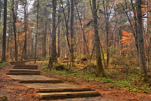 下午1点45的飞机,早早出发前往五营,途径新青湿地公园,听包车师傅说原先里面的白头鹤都飞走了,再加上时间并不充裕在门口望了两眼就继续出发。到达五营森林公园,门票60,小火车10元。