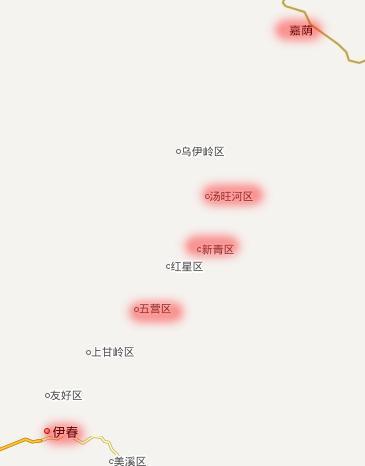 标出的地方都有森林公园,汤旺河位置居中,上下车程都在1个半小时左右,推荐3天住宿都在汤旺河,还有一个很重要的原因是东北室内供暖时间不一样,一般10月就汤旺河开始供暖,五营和嘉荫都没有,晚上睡觉没暖气想想都浑身哆嗦好嘛-。-
