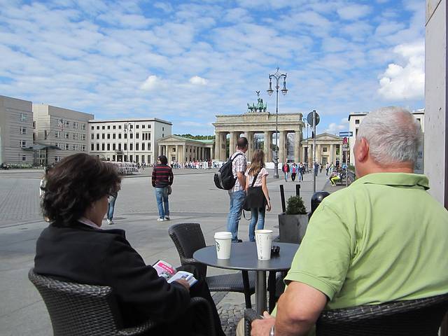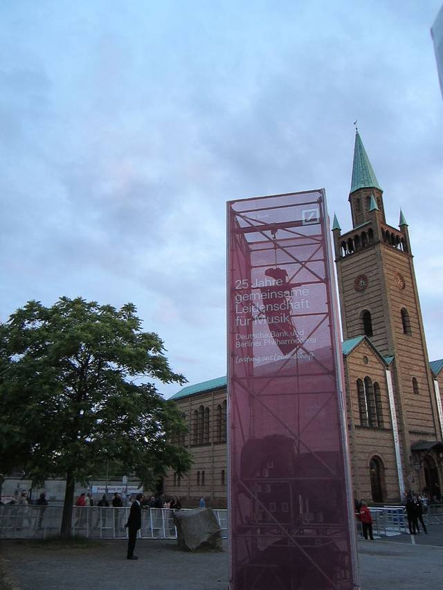去马丁家放下包,立马又坐地铁跑到索尼中心玩耍。发现附近某广场上有露天音乐表演,于是进去听了一个尾巴,可能是真的尾巴了小哥就没要票。尼玛都没发现是柏林爱乐。。。语言真是个问题!