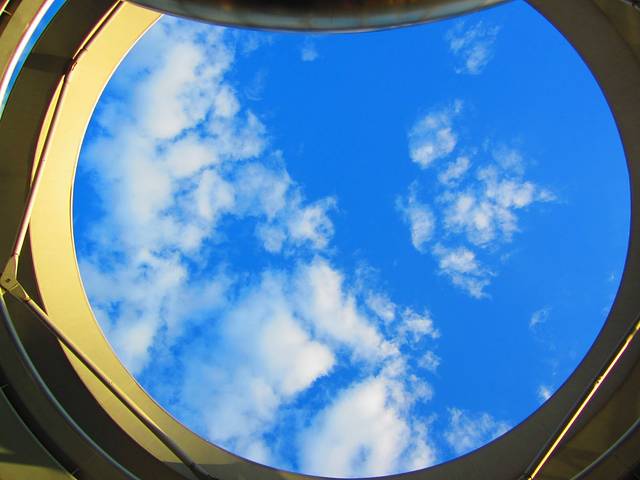 这个真的很牛逼,上到旋转向上的坡道的某个地方,它就会告诉你那里望过去是什么建筑。难道是通过高度定位?