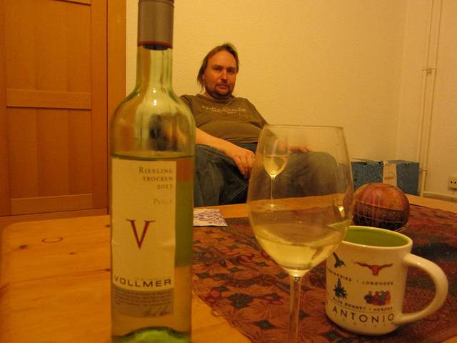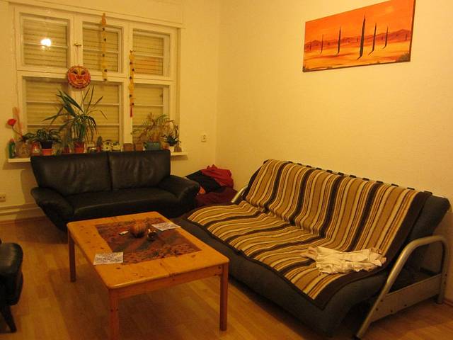 当当当噔!晚上到家马丁请我小喝了一杯。下午刚到的时候喝茶吃蛋糕,稍微聊了聊柏林,他原先是个邮递员,后来腿受伤就退休了,现在在柏林比较便宜的一个区住着没有工作可以生活,打算通过一个也是沙发旅行认识的记者出版自己的故事集。这里几乎每天都有沙发客光临。(但是他不笑的时候看起来有点吓人)