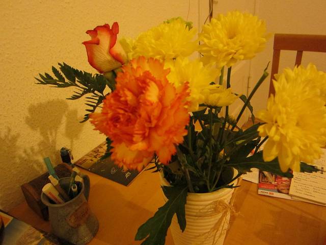 在下飞机后转地铁时突然看到一个花店,于是买了一束给他(据说我是第一个送花哒哈哈哈立马make a distinction有木有),这朵他说是他最喜欢的花!恩颜色是渐变的超级美。