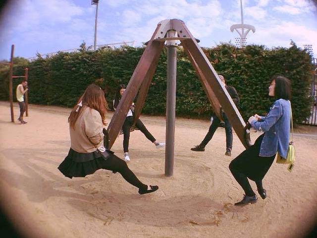 没遇到滑梯,却碰上了这个诡异的家伙,兼具跷跷板和转椅的功能,社区健身器材的地段,游乐园飞椅的享受,爽就一个字~