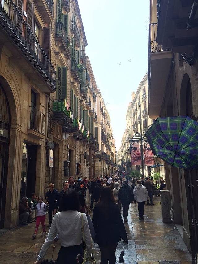 非常反天气预报的下起了大雨。早上本打算去毕加索博物馆的几个人被长长的游客队伍打消了积极性。开始左穿右穿逛起了西班牙胡同。这条街潜伏着不少很有意思的个人设计师,衣服都独具一格仅此一件,可惜我们几个没有一个是西班牙均码,全都穿不了