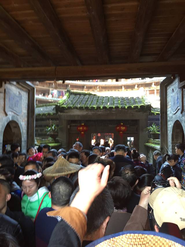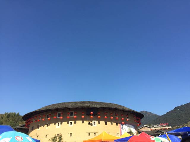 土楼很好看,可以看到土楼下面全是搭建的小吃棚,真的很不和谐