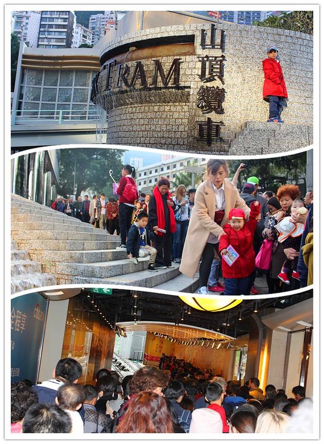 下午3点左右,孩子睡醒了,于是出发,乘坐地铁到中环,尖沙咀--中环仅2站,步行500米左右到达山顶缆车处,排队的人是真多,大约等待了1个小时,顺利坐上缆车,前往山顶。