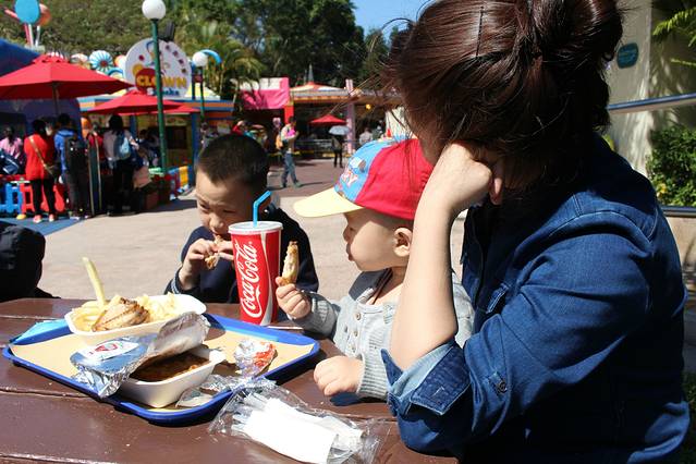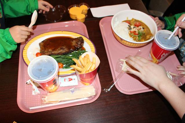 一转眼已经13:30了,大人孩子都累了,去餐厅用餐,也领略一下迪斯尼的消费,简单不过的盖浇饭要你200多港币,真的是高消费,甚是想念我的大沈阳。