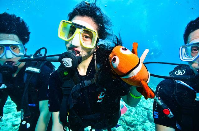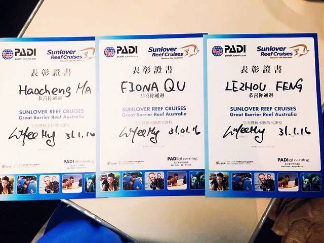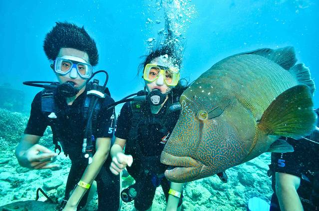 在船上的时候潜水教练会进行培训,算是一个比跳伞更有技术含量的活动。包括呼吸嘴脱离了应该怎么办,进水了应该怎么办,耳朵疼鼻子疼怎么办之类的,可能听上去有点吓人,但其实只要放轻松保持均匀呼吸,不会有问题的~