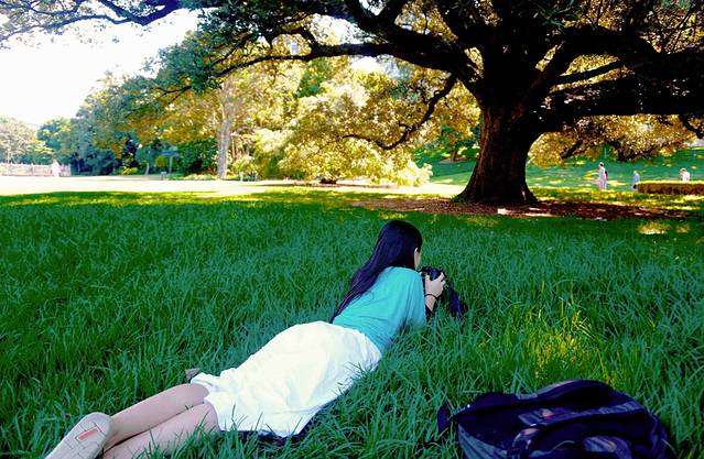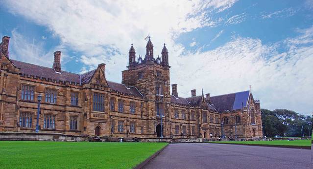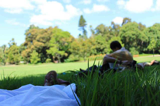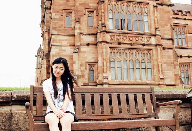 应该说对悉尼大学印象最深的就是哈利波特楼门前的这大片草坪了,小伙伴说“悉尼的草坪就是用来给人踩的”。我们便肆无忌惮地在上面翻来覆去地打滚了。这天是阴天,见不到很蓝的天见不到层次分明的云,难以照出美来,但是体感却是格外格外的舒服。往草地上一躺小风一吹,简直感觉这辈子都值了。以至于后来朋友拉了我半天也不肯不起来=