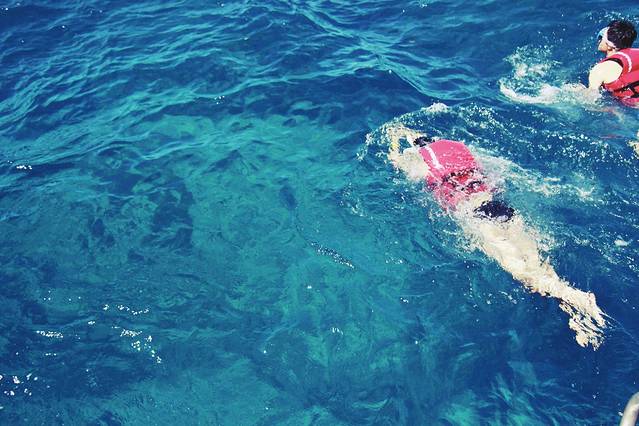 注意浮潜可不是水很浅的潜水哦~只是叼着呼吸管不用抬头换气的游泳而已。水深六七米哈哈哈。