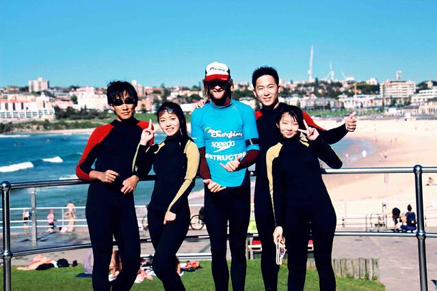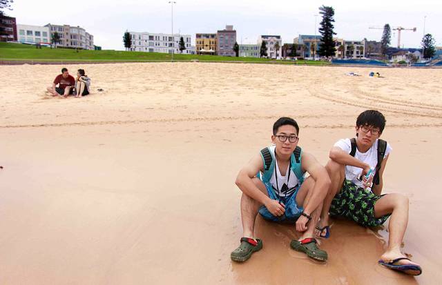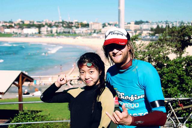到了才知道大早上的邦迪海滩人是最多的~这里人生活真是好健康~老外授课,他们肢体语言特别丰富~虽然不能完完全全听懂不过看着比划也就全明白了~冲浪不是一项很容易的运动,之前跳伞时候哥伦比亚小哥和加拿大小哥也告诉过我们非常难。我就不说运动神经发达如我第二次尝试站板就能冲到岸边了哈哈得瑟一下~不过我们冲的都是小浪没有往很深里尝试,教练也确实教的非常好,他说他在这里冲了一辈子浪~想尝试冲浪就一定要抱着猛喝海水的心理准备哈哈哈。