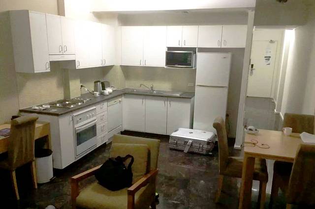 最后4天在悉尼达令港住的Oaks Goldsbrough Apartments,酒店房间设备非常齐全,上图就知道了(这是客厅,卧室是单出来的,这还只是两人间),各种餐具烤箱什么的超级齐全!我家都没这么齐全=但是酒店wifi不是免费,而且非常贵=地理位置还不错,走到达令港就5-10分钟路程很方便。