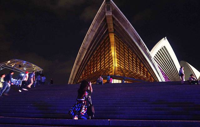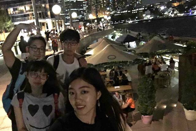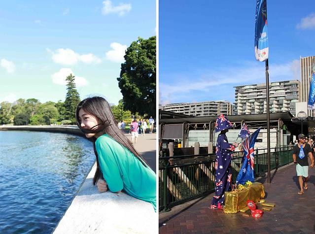 就这么坐着看看国庆表演,扛着三脚架拍悉尼歌剧院和海港大桥的照片(虽然还是怎么都拍不好),趴在栏杆上听驻唱歌手弹吉他唱歌,足足从晴天听到了黑夜。