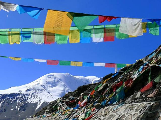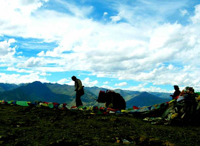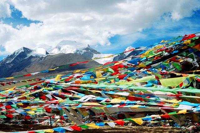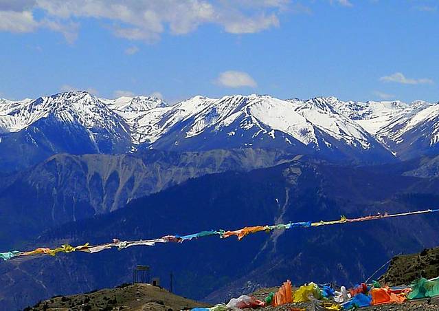 摄于海拔5230米的米拉山口。米拉山口,地处拉萨市到墨竹工卡县与林芝地区工布江达县的分界上,这里是拉萨——林芝旅游线上的一个休憩之地。米拉山口海拔5013米,站在山口,山风劲吹,蓝天白云下,五彩经幡在大地与苍穹之间飘荡摇曳,连地接天,将藏民们虔诚的愿望传达上苍神灵。