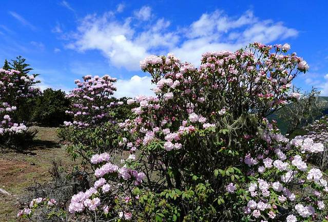 这一天,大部分行程是在云南境内。红拉山漫山遍野的杜鹃花,让人赏心悦目。梅里雪山的晚霞,让人叹为观止。晚宿飞来寺。