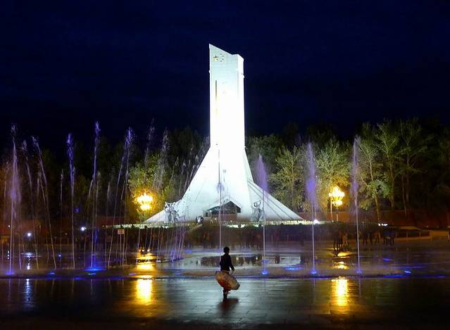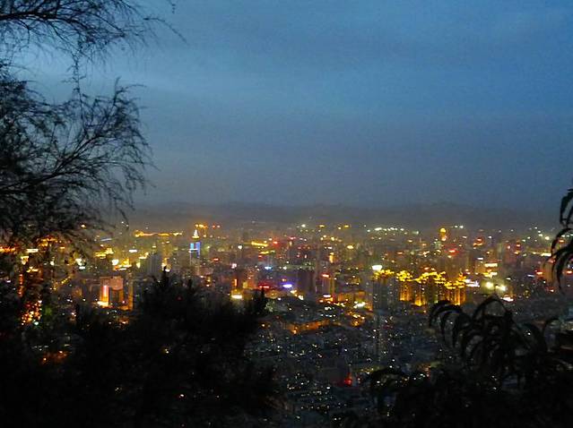 兰山上拍到的兰州夜景。兰山公园 位于兰州市区正南皋兰山上, 在此俯瞰市容,黄河穿城而过,市容尽收眼底。傍晚时分,远山云蒸霞蔚,市内万家灯火,场景壮观。