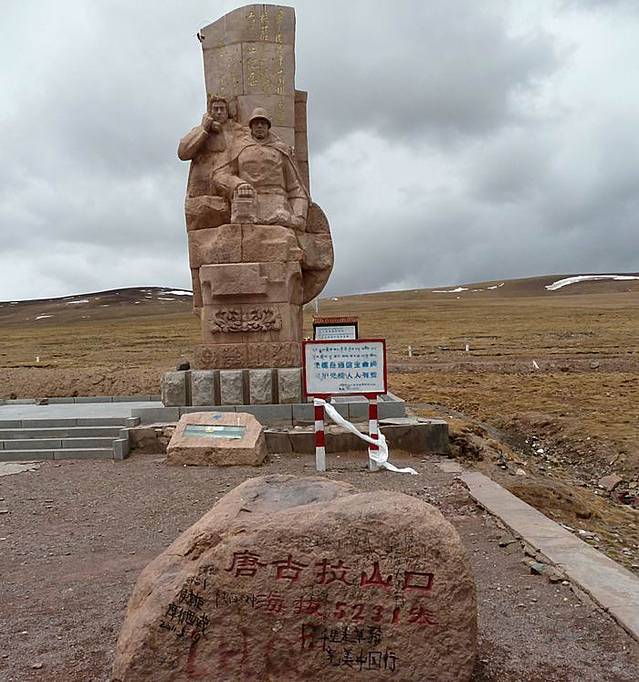 第六天 5月21日 格尔木——昆仑山——可可西里——沱沱河大桥——唐古拉山口——那曲——纳木错 行程约1150公里。唐古拉”,藏语“高原上的山”,由于终年风雪交加,号称“风雪仓库”。唐古拉是青海和西藏的分界线,海拔5231米,山口处建有纪念碑及标志碑,是沿青藏公路进入西藏的必经之地,并是长江的发源地。这里是世界上海拔最高的公路。