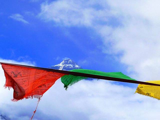 从绒布寺拍到的珠峰。绒布寺,位于西藏日喀则地区定日县巴松乡珠穆朗玛峰下的绒布沟“卓玛”(度母)山顶,海拔五千八百米,地势高峻寒冷,是世界上海拔最高的寺庙,所以景观绝妙。从这里可以远眺珠峰。