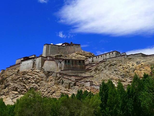 宗山古堡遗址矗立在江孜古城中央的悬崖峭壁上,整个古堡群错落有致的雄踞山顶,海拔为4020米,在年楚河平原中央显得非常雄伟峻峭。让江孜最享盛名的是它有一段可歌可泣的英雄历史。1903年冬天,英国侵略军从亚东进犯江孜,遭到西藏军民的顽强抵抗。英军死伤惨重,被迫逃跑。1904年4月,英军再次攻打江孜,他们凭着先进的武器,滥杀无辜,西藏军民在宗山上用土制枪炮顽强抵抗两个多月,终因清政府的腐败无能、武器落后及火药库意外爆炸,弹尽粮绝,抗英勇士全部壮烈牺牲。电影《红河谷》真实的再现了这段历史。