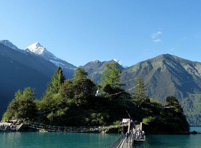 巴松措又名错高湖,是西藏东部最大的堰塞湖之一。巴松措景区集雪山、湖泊、森林、瀑布牧场、文物古迹、名胜古刹为一体,是西藏东部的一个旅游胜地。
