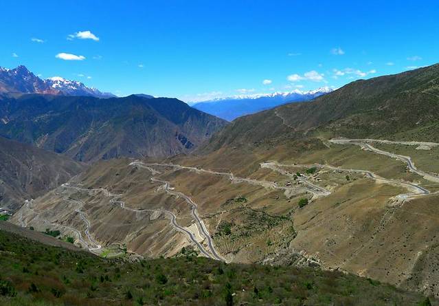 摄于海拔4618米的业拉山口。业拉山不仅是风景荟萃之地,同时也展现了世界公路史上的奇迹,著名的业拉山九十九道拐,曲折蜿蜒的盘山公路不仅打通了横隔在澜沧江和怒江之间的天堑,更为路过此处的游客留下了迷人的风景。