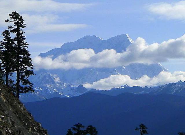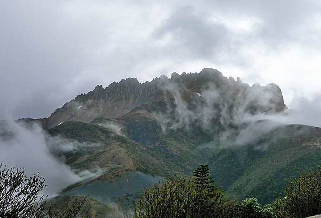 白茫雪山位于云南省德钦县境内,海拔5430米,相对高差超过3000米。区内植被垂直分布明显,在水平距离不足40公里内,有7-16个植物分布带谱,相当于我国从南到北几千公里的植物分布带,蔚为奇观。滇藏公路途经白马雪山。图为雾锁白马雪山。
