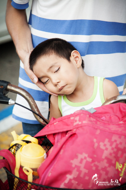 上车睡觉 连自行车的小座椅上也能酣酣入睡