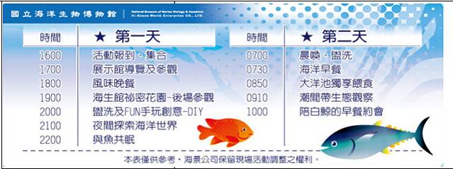 价钱:海底隧道是2380NT/人(包括了门票、吃宿等所有费用),每晚只接待40人