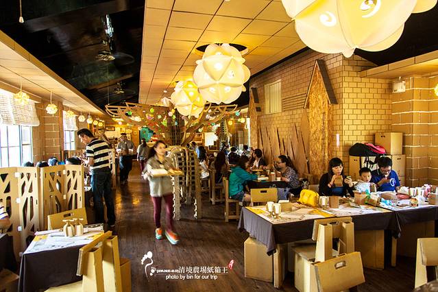 顾名思义 这里的餐具 餐桌 餐椅 装饰 都是用纸皮做的