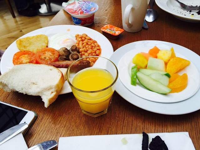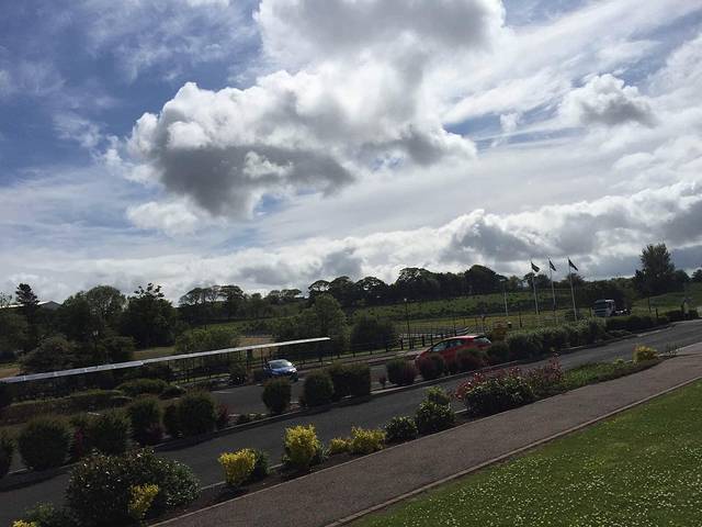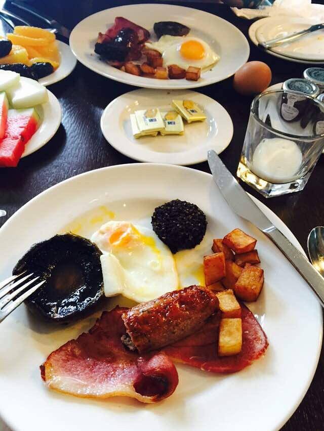 酒店窗外全景。。。我可是冒着手机掉下去的风险呐!景色太好,于是一进房就和室友泡了杯咖啡,靠在窗边聊天远眺爱尔兰海了! 时不时就看到彩虹~竟然聊到天黑了!!天黑!!!