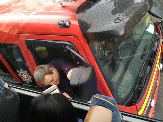 去酒店路上,和消防车擦身而......没过,路太窄,两旁又停了车~! 话说,车里面有个帅哥啊!没拍到!怪我太矜持