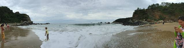 下午去的金沙滩,真的很壮观。在海边长大的我们,也没见过这么大的浪。