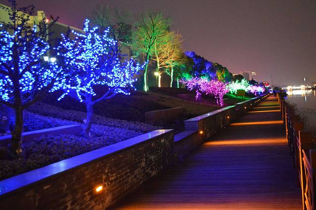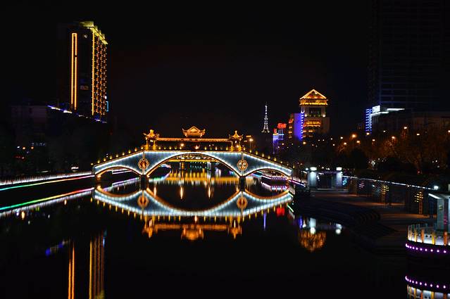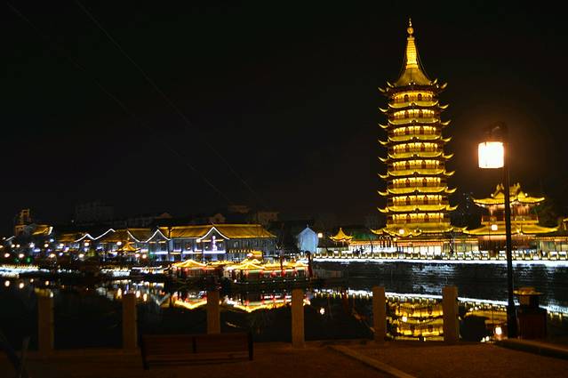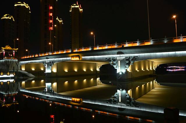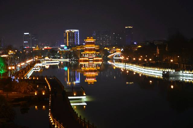 那个夜景是在大运河广场附近,还有那个酒店好像叫醉笑天酒店,那条街是回民街,街上牛羊肉都挺真的,不买猪肉。
