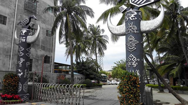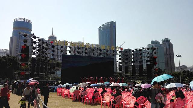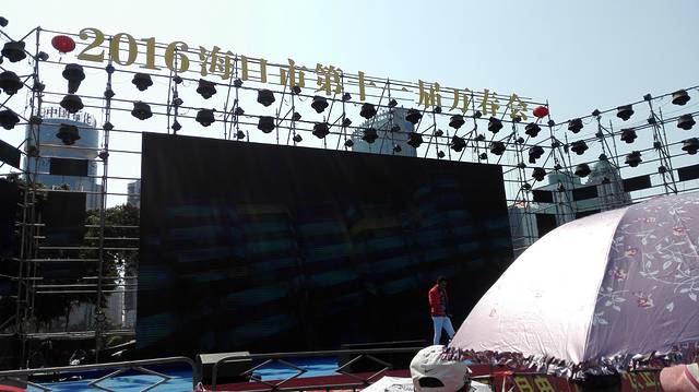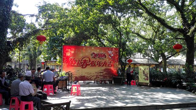 万泉河景区白天不开门,晚上才开,停车后在马路边看了看,看到了万泉河三个大字,在对面吃了午饭!