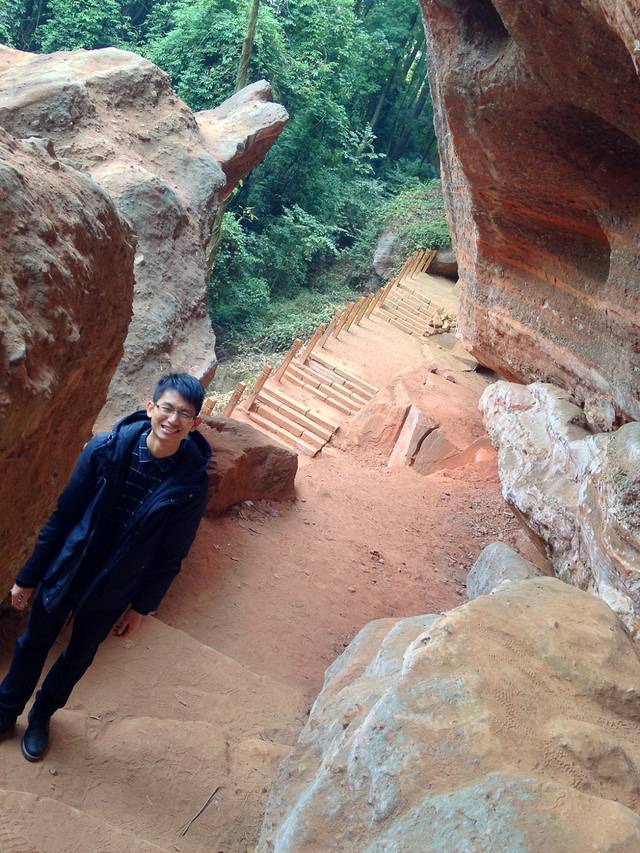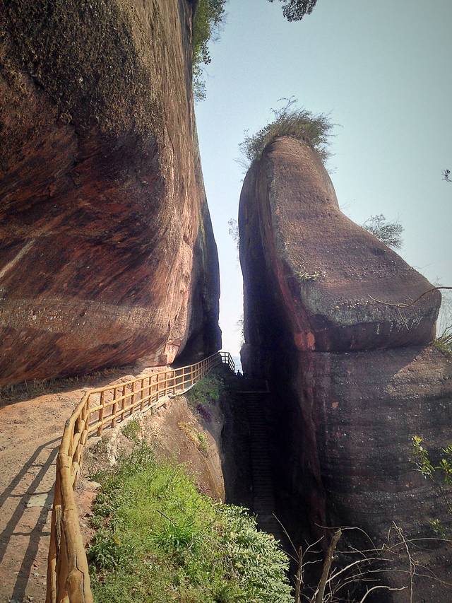 摩崖石刻有条路往福音峡, 这是丹霞山的一线天.