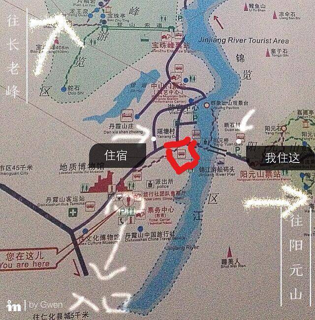 在入口处有接驳公交进景区,白天大概5分钟就到阳元桥旁边的一个落客点,过了桥就到阳元村。而图中另外一个标记住宿的地方楼主目测旅馆都很新也可以选,就是感觉没那么方便而已。