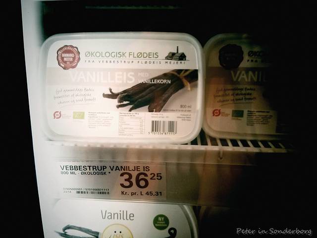 这的冰激凌的确很便宜,香草味的800ML的一大盒才卖36,纯香草荚的不是国内的那种香精兑的。