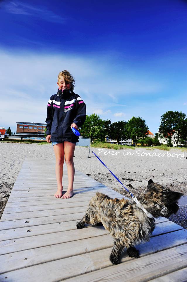 这的人都不怕冷,海风吹着冷的不行,而这小姑娘就穿个短裤在海边溜着狗
