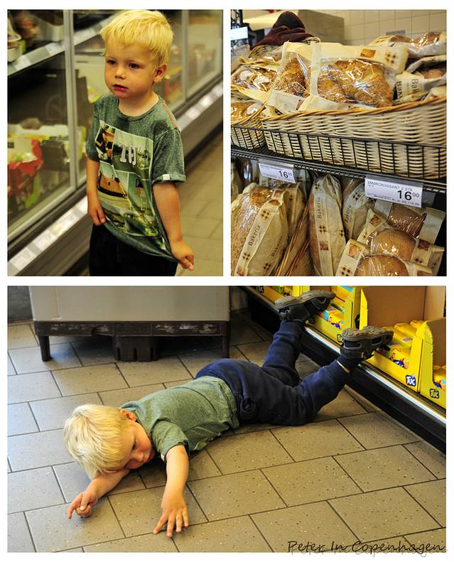 这熊孩子是我在路边一个超市偶然发现的,早上9点多人很少,孩子跟着妈妈在超市里买东西,他在这里打滚啊,滚着滚着就滚远了…………