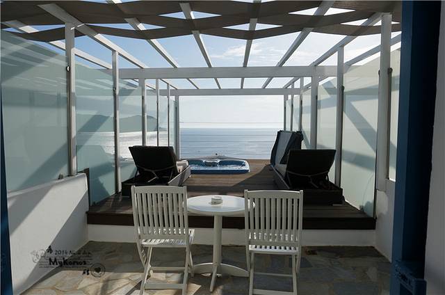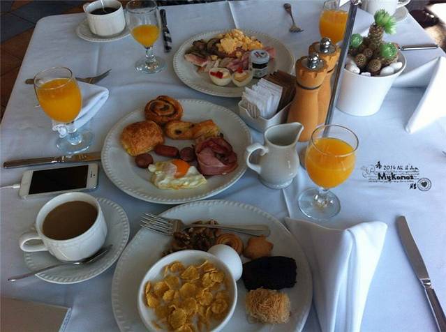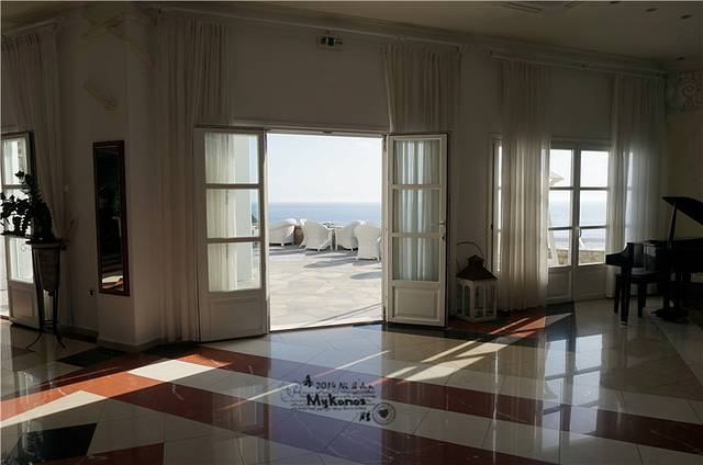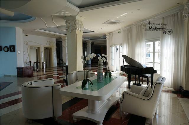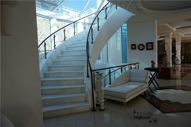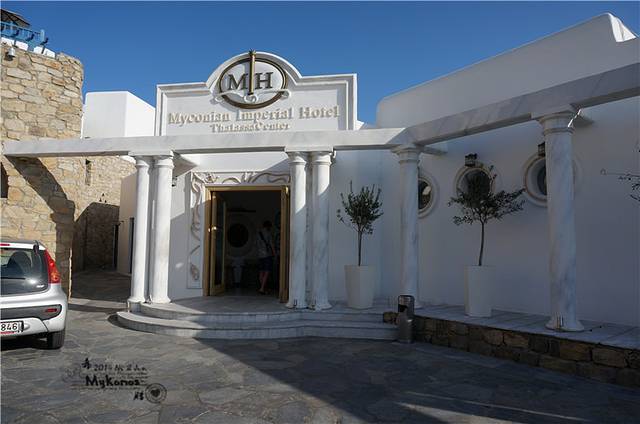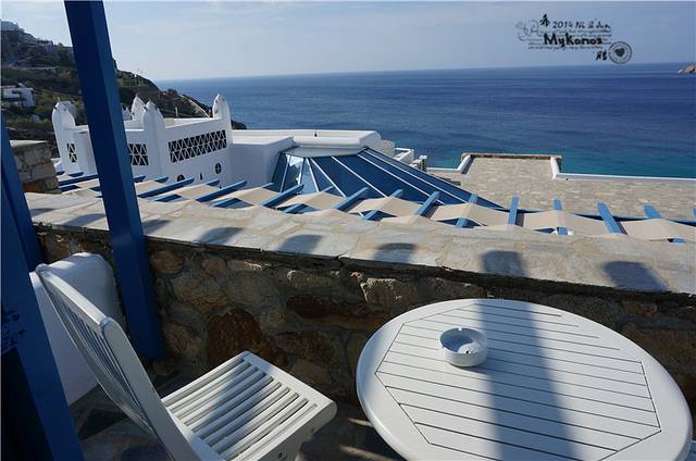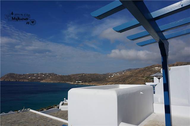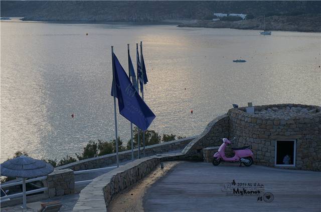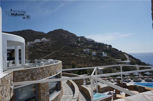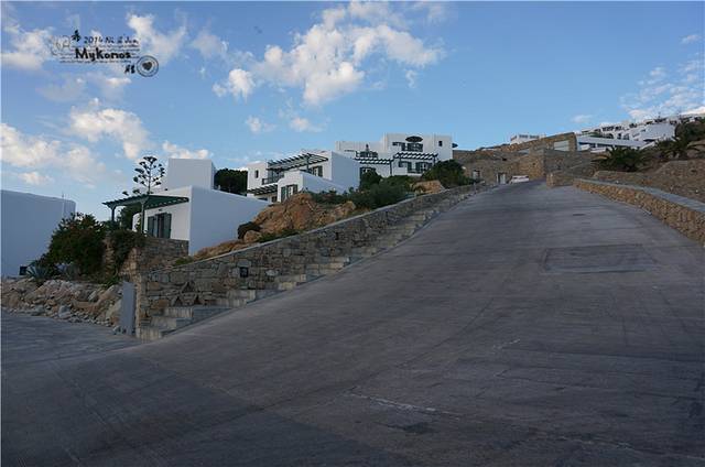 开到米岛花了将近5个小时,无法想象那蓝白世界是怎么砌到天上的。下了船车载着我们一直往山上盘旋,开了将近15分钟把我们带入了今晚要入住的酒店。强烈推荐这家米岛五星酒店,(Myconian Ambassador Mykonos Hotel & Thalasso )酒店坏境超好,整体感觉就像是度假村,有自己的餐厅。还提供班车到米岛小镇的接送,省去的自行前往的麻烦。不过只住了一晚上