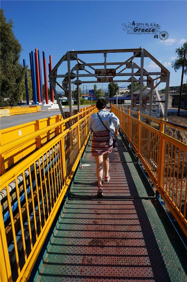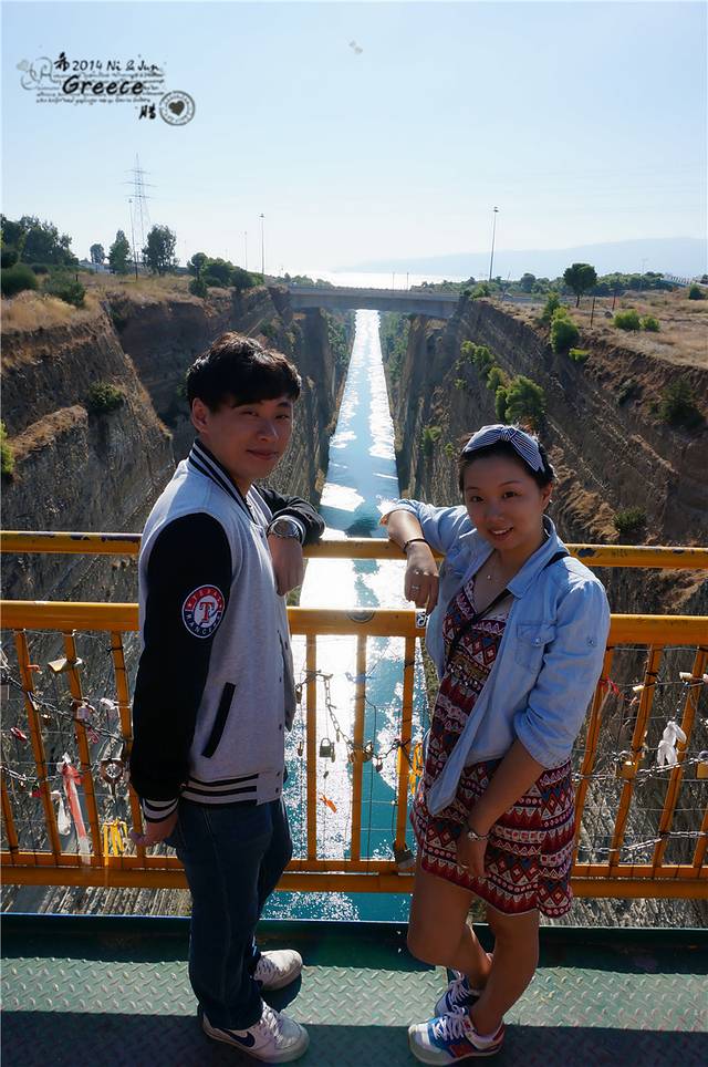 坐巴士车来到了科林斯运河,有着欧洲 巴拿马 运河之称。连接科林斯湾和萨罗尼克湾,接通爱奥尼亚海和爱琴海 。1881-1893年开凿。长6.3公里,深,河谷底宽,河面宽。缩短从亚得里亚海到比雷埃夫斯的航程320公里,航运意义重要。河的颜色很特别吧