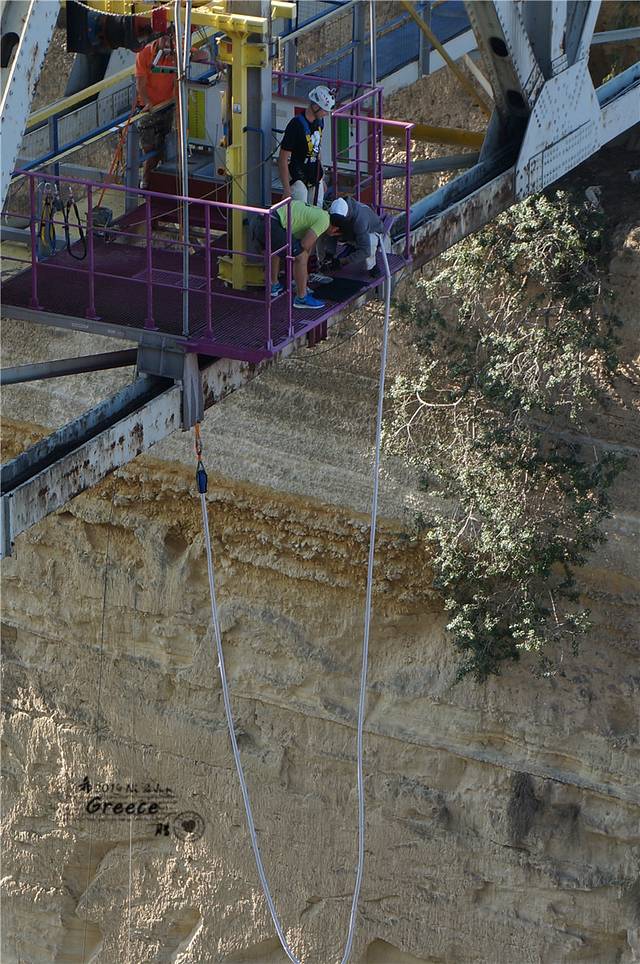 朋友说我在测试这座桥牢不牢。在这个运河上蹦极的感觉会如何?