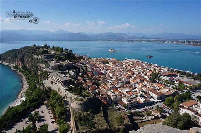 在城堡上俯瞰美丽的纳芙普利翁小镇全景。