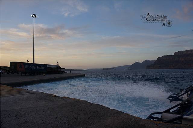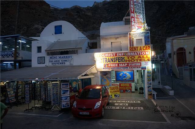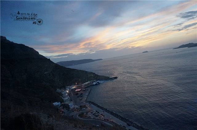 随着蜿蜒的山路一直开往岛上。我们一路看着车窗外的风景,一路震撼!!!但由于船的延误,日落没看见,只能逛逛晚上的圣托里尼。