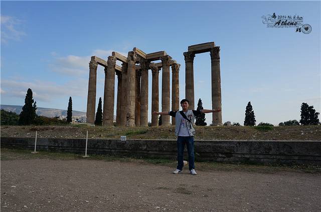 奥林匹亚宙斯神庙-在卫城的山脚底下,现在只能说是遗址了,柱子是科林斯的风格,原来有104根,现在只留存下13根柱子,远看不觉得有什么特别,走到近处时,柱子的高度还是非常令人震撼的,神庙旁边就是哈德良拱门.